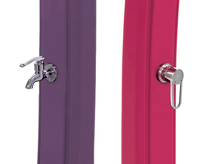Un simple raccord à une arrivée d’eau suffit pour alimenter cette douche solaire.