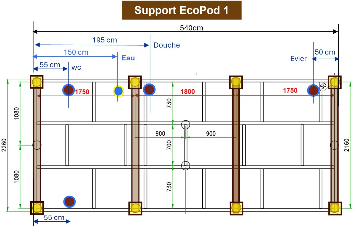 - La mise en place de votre EcoPod nécessite un support au sol solide et durable. Nous avons étudié ce sujet à travers les différentes possibilités et avons conclus que la solution proposée regroupe le plus d'avantages. Mais la décision vous appartient...