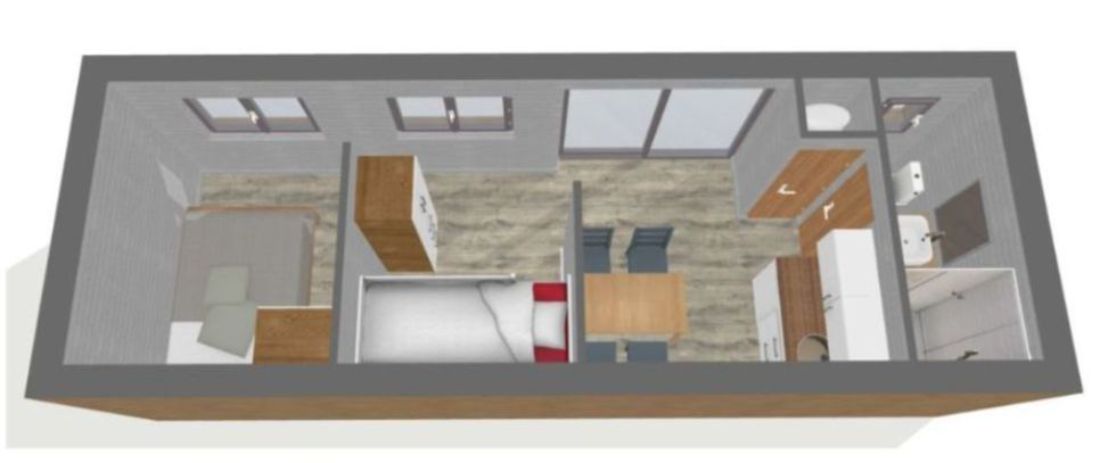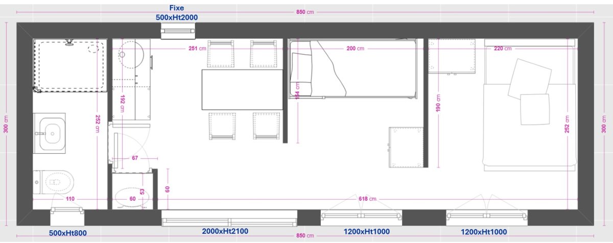 Surface totale 25,5 m2 - 8,50X3 m - 2 chambres