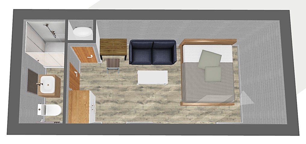 Lodge PREMIUM 20 m2 - Version StudioLivré préfabriqué, assemblé et aménagé, prêt à habiter..Concept structurel haut de gamme - Isolation renforcée